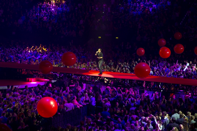 De Vrienden van Amstel is hèt jaarlijkse feest waar creatieve en technische grenzen worden opgezocht. Dit jaar bracht de traditioneel spectaculaire finale, Brabant en Limburg letterlijk dichter bij elkaar. Guus Meeuwis en Rowen Heze werden door een bewegende catwalk over de hoofden van het publiek samengebracht en dat mondde uit in een letterlijk spetterende finale!